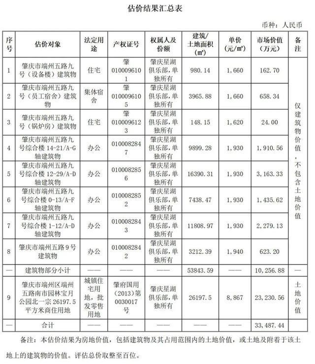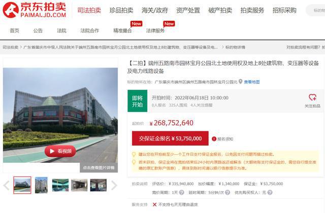 公告显示,标的所有人为肇庆星湖俱乐部,起拍价为268752640元,保证金53750000元,增价幅度1340000元。