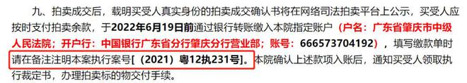 拍卖公告提到,本次拍卖涉及一宗司法纠纷,案件执行案号为[(2021)粤12执231号]。